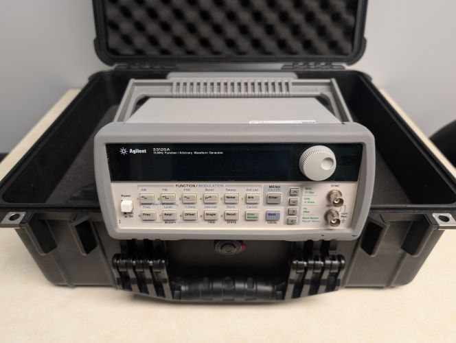 This ILC/PT Kit contains a: Hewlett Packard Function/Arbitrary Waveform Generator, Model 33120A (option 001: Phase Lock / TCXO Time base - 4 ppm/year). The participant will configure the Function/Arbitrary Waveform Generator, using the Internal Time Base, to generate sine wave signals of 1 Volt (RMS) amplitude in the frequency range of 0.05 Hz to 15 MHz and then measure 14 different frequencies using their laboratory standards and report their associated measurement uncertainty.